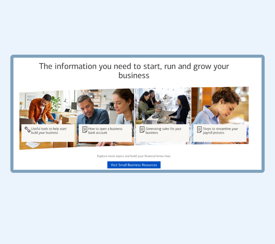 A consolidated resource hub for business owners and aspiring entrepreneurs to gain insights across starting, financing, operating, managing and retiring from their business, as well as insight from current trends and inspiration from fellow small business owners; offered as content and step-by-step guides